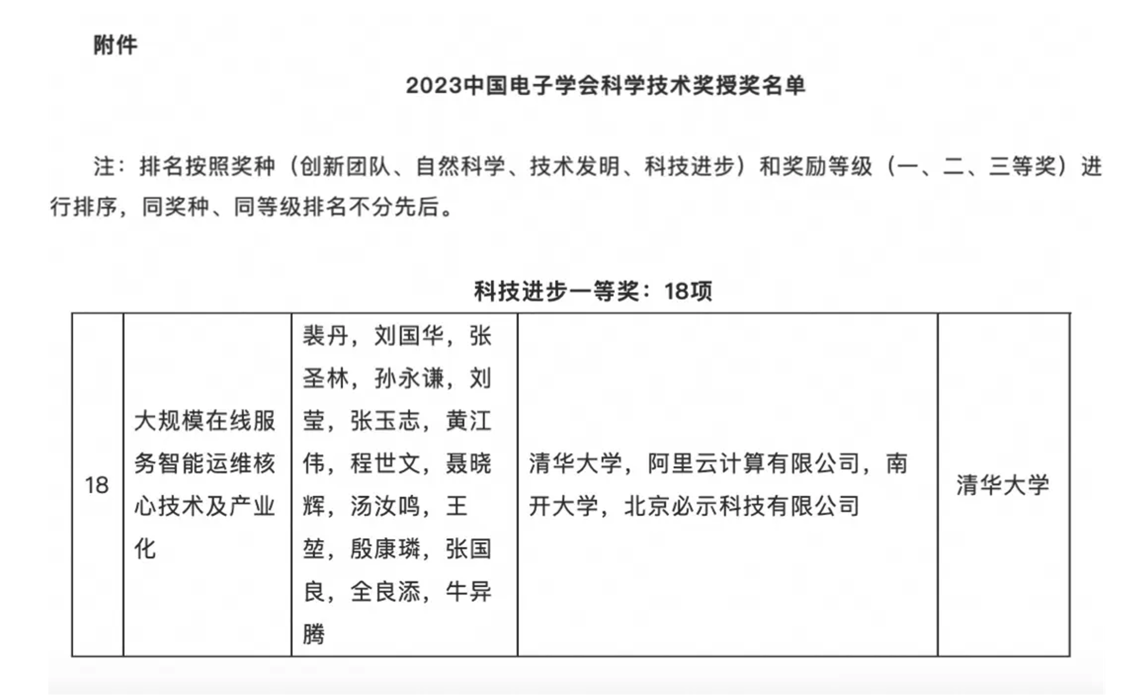 本次获奖的“大规模在线服务智能运维核心技术及产业化”项目由清华大学、阿里云计算有限公司、南开大学、北京必示科技有限公司共同完成。项目面向国家在线信息服务的稳定可靠运行的重大需求,在现有互联网体系结构下,基于复杂运维数据,构建在线服务的运维知识层面,实现其快速故障恢复。