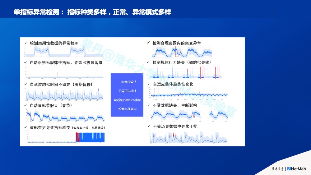 首先,相信大家到现在已经都了解不同运维场景用的技术和算法是不一样的(如下图所示我在清华实验室发表的论文中采用过的基础算法),很难用黑盒方法来做。